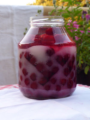 Най-накрая се слагат вишневите листа, бурканът се затваря и се оставя на тъмно в продължение на 35-40 дни или докато захарта се разтопи. От време на време може бурканът да се разклаща, за да се ускори топенето на захарта. Най-накрая течността се прецежда и вишновката се налива в тъмни бутилки, където е готова по всяко време да стопли и отпусне и най-стресирания консуматор (това последното е специално за дамите от моето обкръжение, които чакат публикацията и новата вишновка с нетърпение)